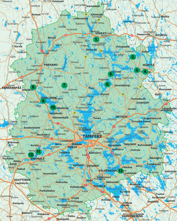 W rejonie miasta Tampere można znaleźć